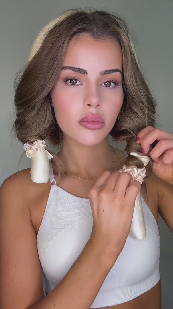 Curlyna satin curler creates gorgeous waves overnight. Sleep with it, wake up beautiful.